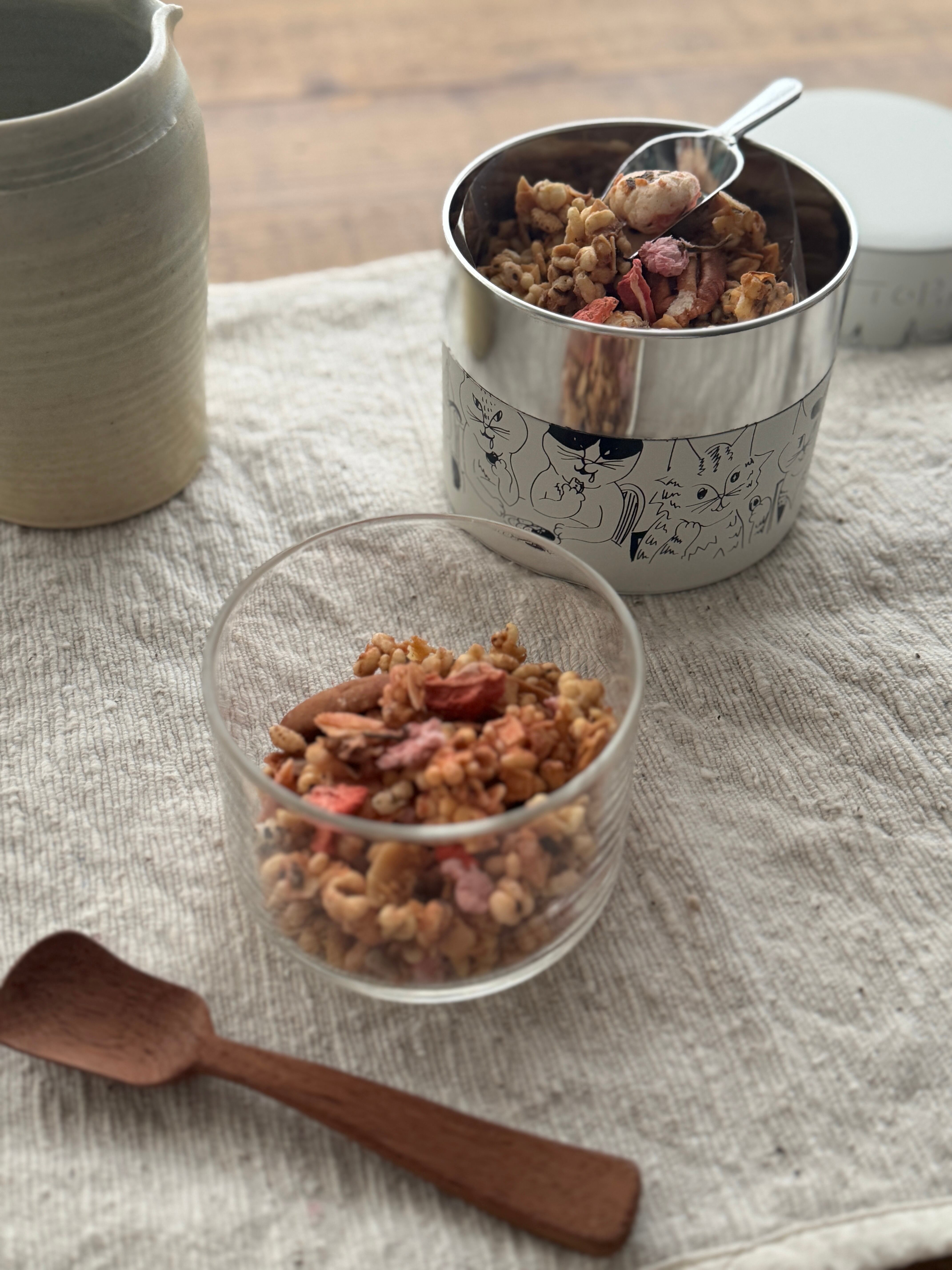 Oil Free Sakura & Strawberry Granola を入れてご用意いたしました。